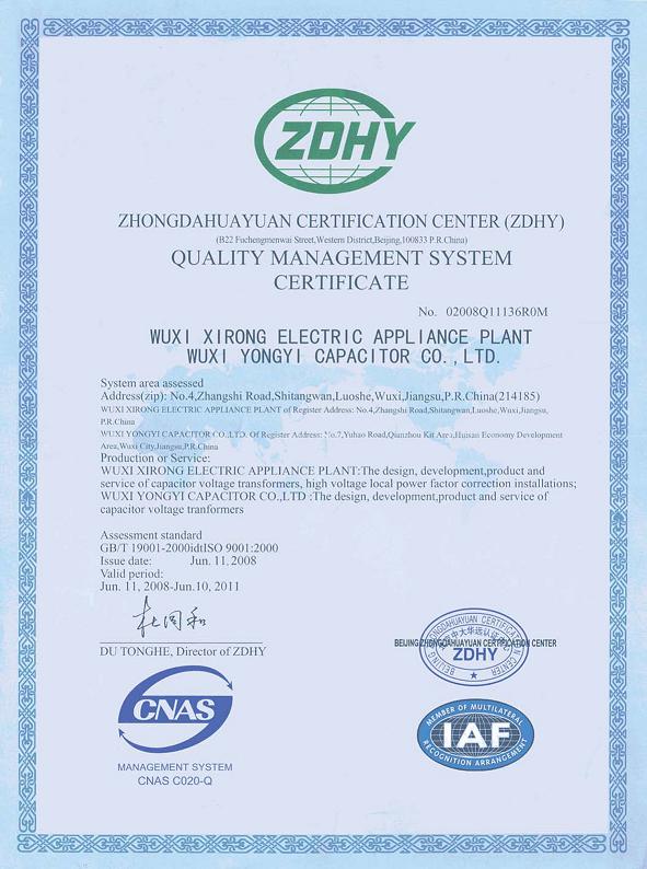 Qualification certificate release time:2020-07-20 04:20:36source:Wuxi Xirong Electric Appliance Co., Ltd.Click:1817